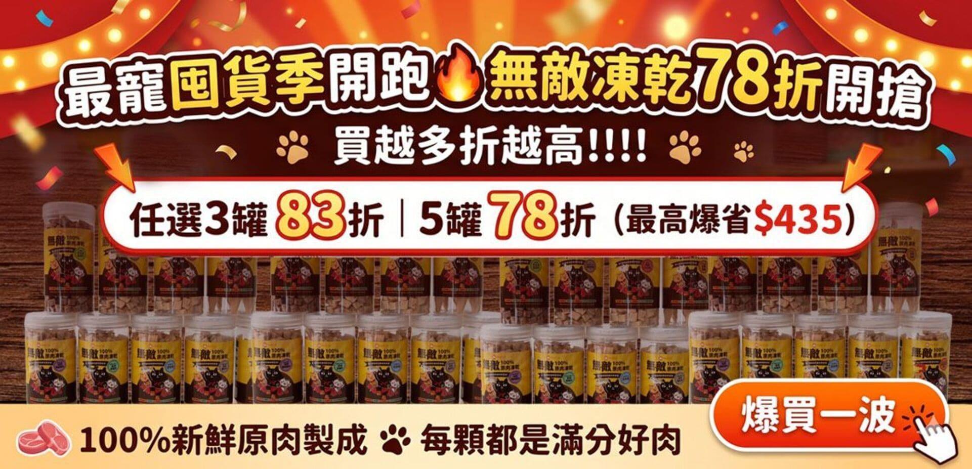 當月限量5組!!最高現省$5000up *內有購買網址勿直接下單*【任選綜合4入優惠無敵貓糧】鮮雞蜂王乳+霸王野雞+大洋鮮極魚+動力火雞鹿 無敵貓糧 貓飼料
