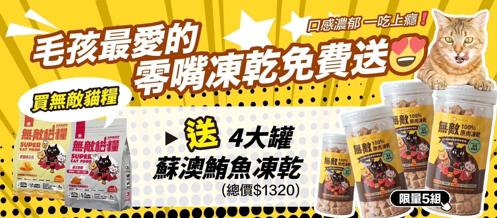 最後2組【送四罐鮪魚鮮肉凍乾】無敵貓糧 鮮雞蜂王乳+霸王野雞 6公斤組合包 送 超值好禮 限時活動