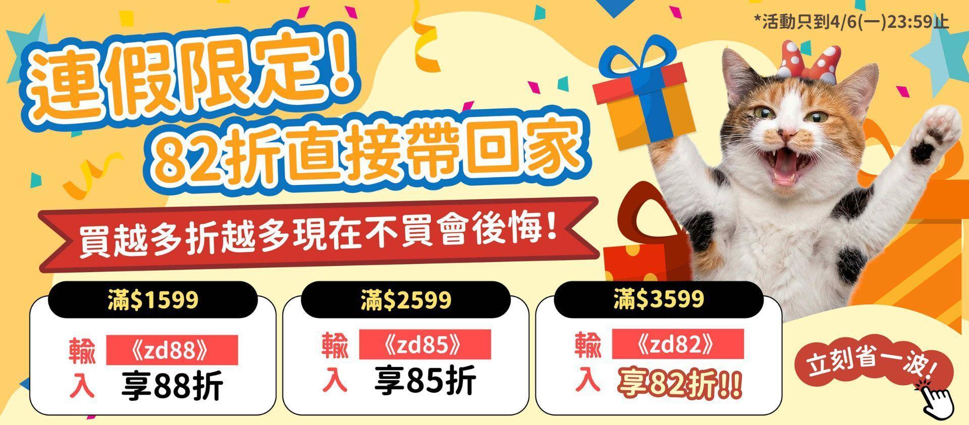 連假限定!全館天天82折!折扣無上限【總價值破9,000智能餵食組直接送給你】