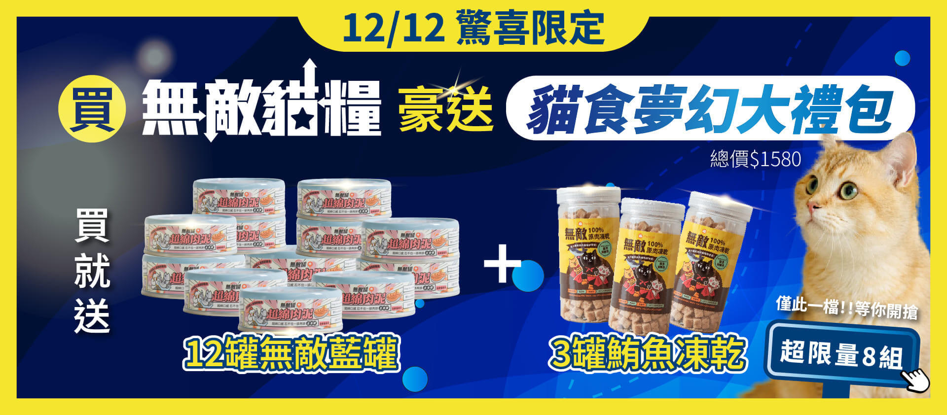 年末最猛大放送【豪送半年份毛孩凍乾】無敵貓糧 四入綜合_六公斤贈品組合包 鮮極魚+火雞鹿+蜂王乳+霸王野雞 送豪華好禮