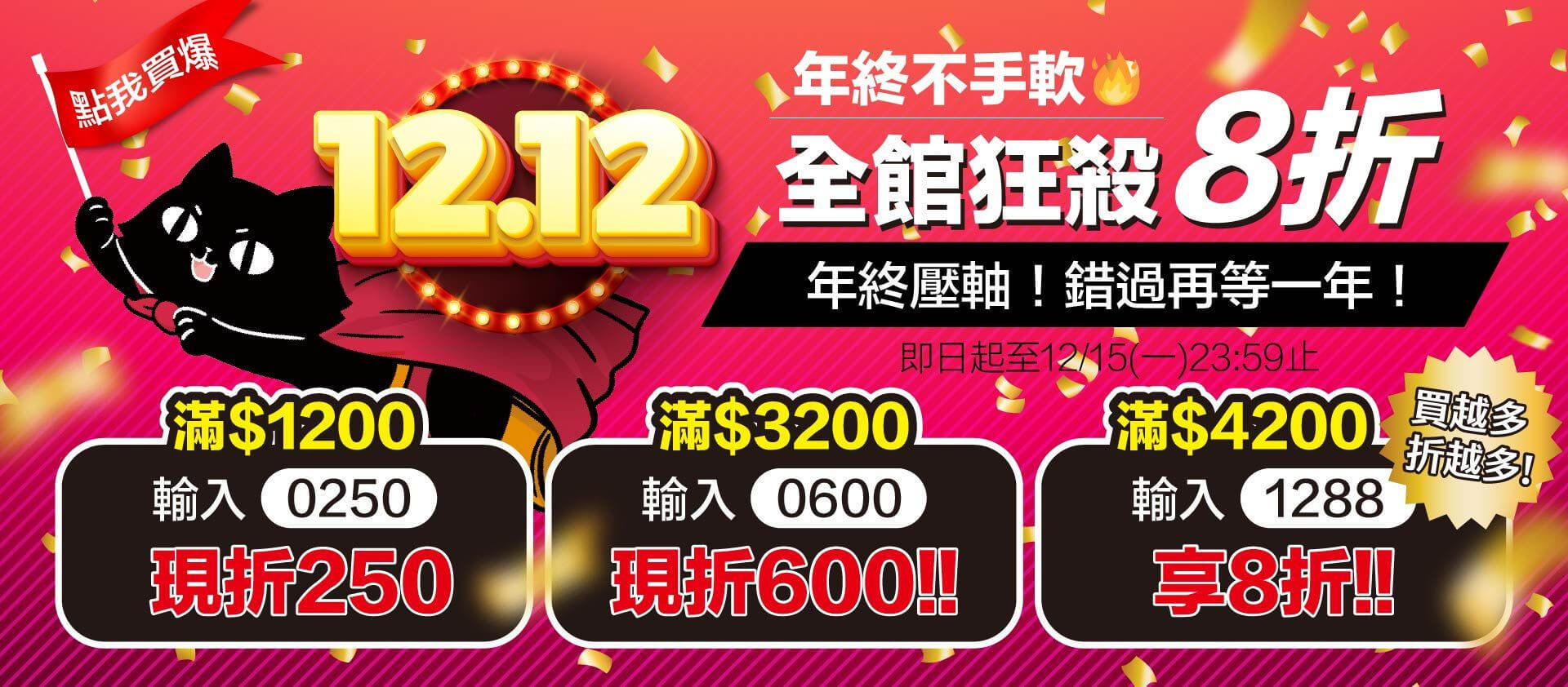 年末最大檔!!【雙12開跑全館狂殺8折再送限量滿額好禮】