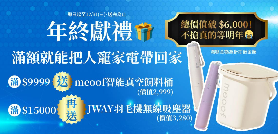 全館單筆滿$9999直送價值$2690【meoof真空飼料桶】*限量5台*