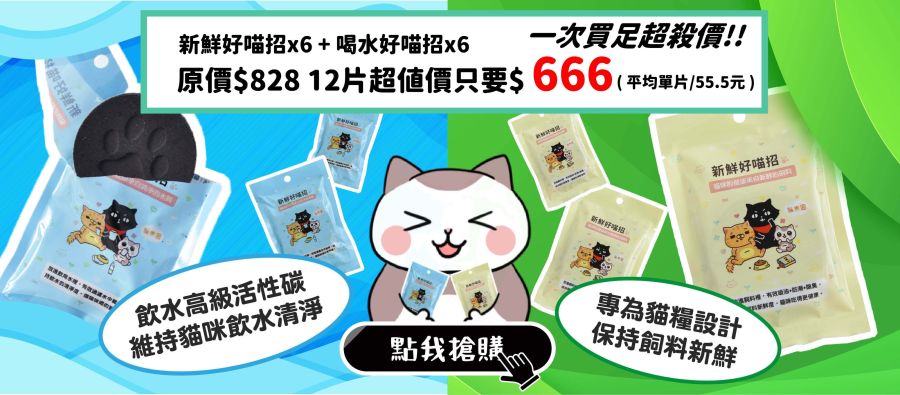 新鮮好喵招6片+喝水好喵招6片 12入優惠組合