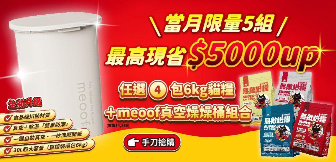 商品詳情 \ 6公斤最強『任選』超值組合 / ⭐當月限量5組⭐任選6kg口味4入+meoof 真空燥燥桶 30L (價值$4,860)原價$14,760超值組合價只要$9,499最高直接讓你現省5000up❗❗買到賺到⚠️當月限量5組⚠️