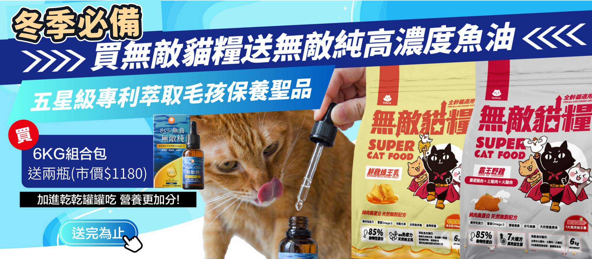最後5組🎁買貓糧組合包 送 85%純魚油兩罐 (價值$1180)‼️