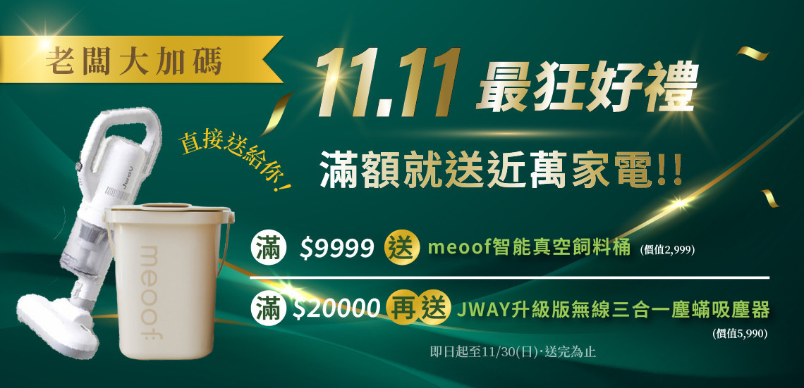 【感謝會員再加碼🥰】11月期間下單貓糧品項滿 『1111』即可參加抽好禮 🎁