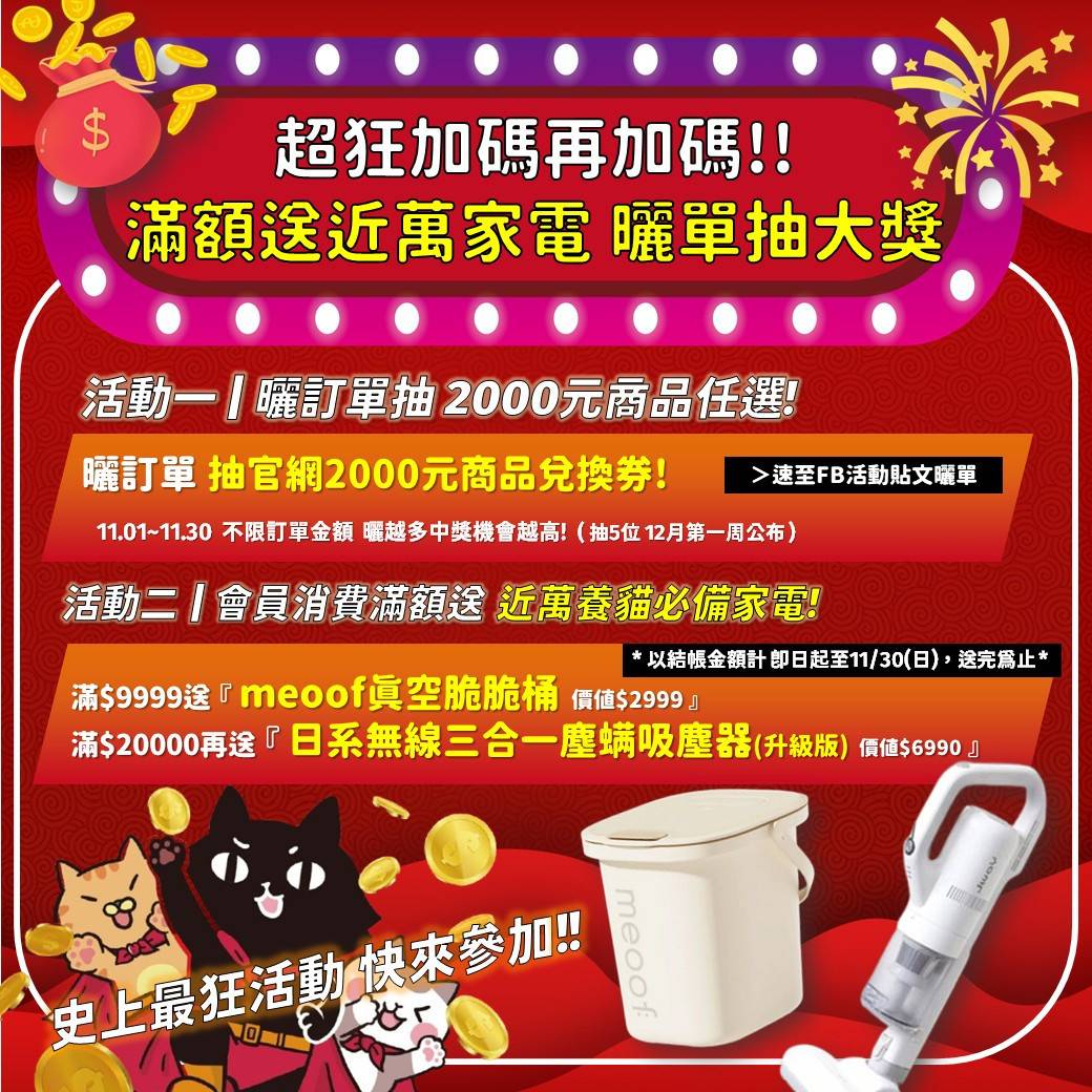 【貓樂園九月感謝祭】期間內下單 『不限金額』即可抽總值破萬好禮 🎁