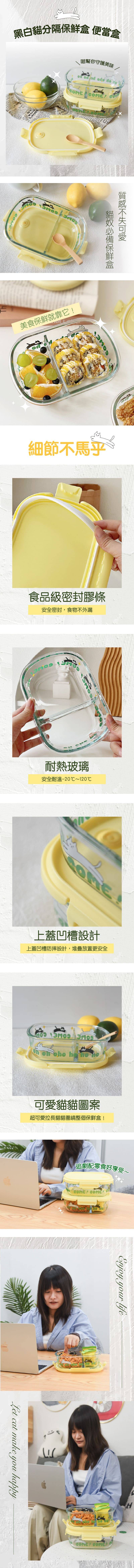商品詳情 『商品資訊』・商品:【喵幫你守護美味】黑白貓分隔保鮮盒 便當盒・樣式:單格、兩格・尺寸(cm):20*15*8・材質:耐熱玻璃 【喵幫你守護美味】黑白貓分隔保鮮盒 便當盒 TWD $399 ~ 479 TWD$ 299 ~ 329
