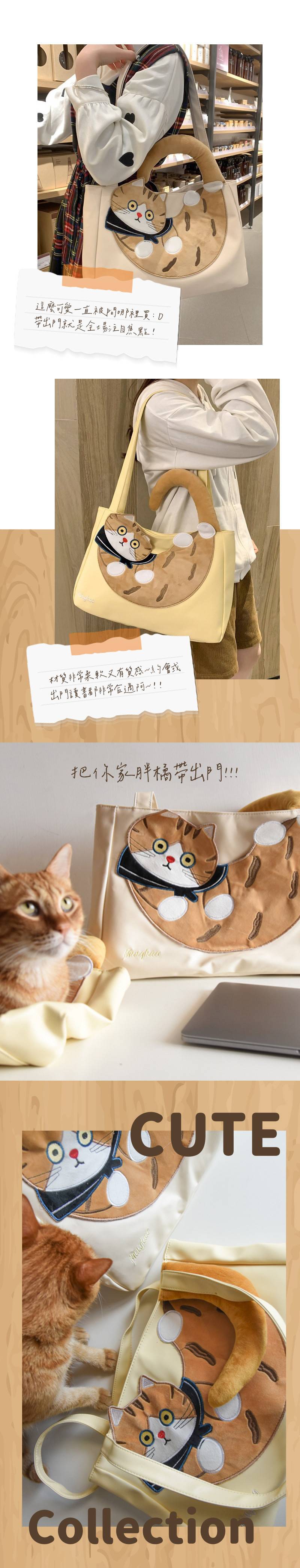 【柔軟又有型】慵懶橘貓大容量單肩包
