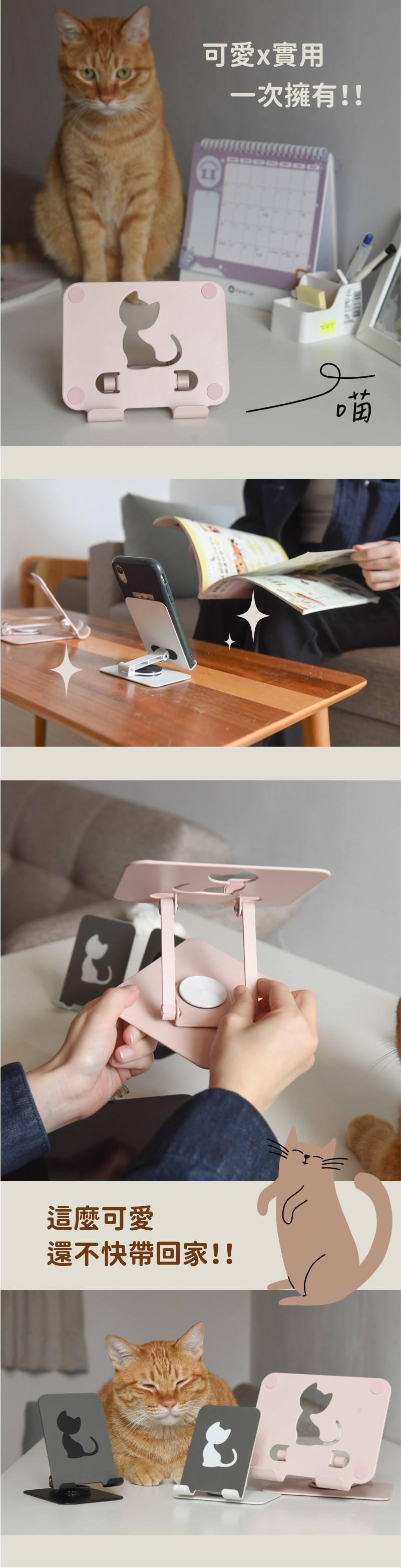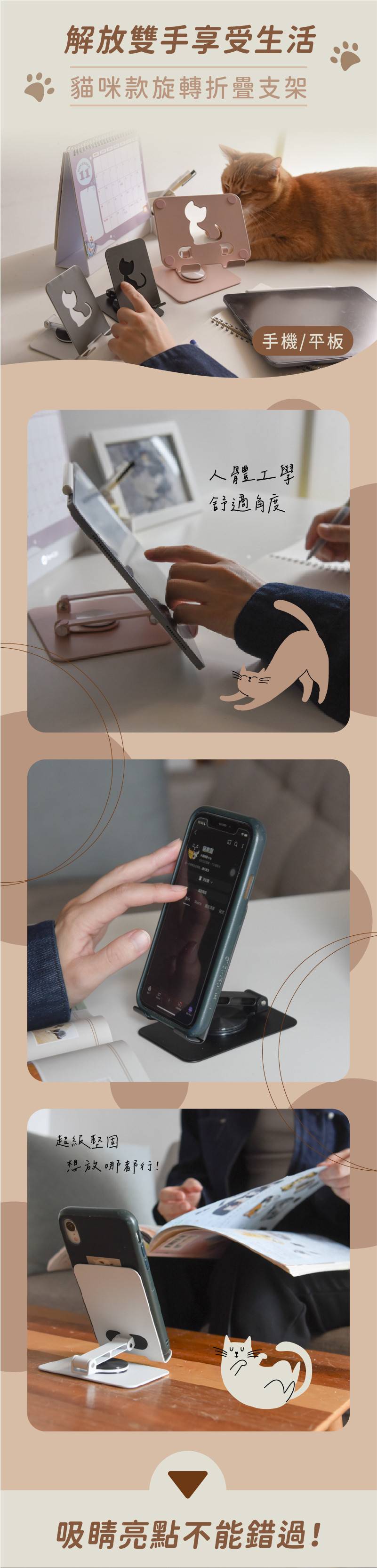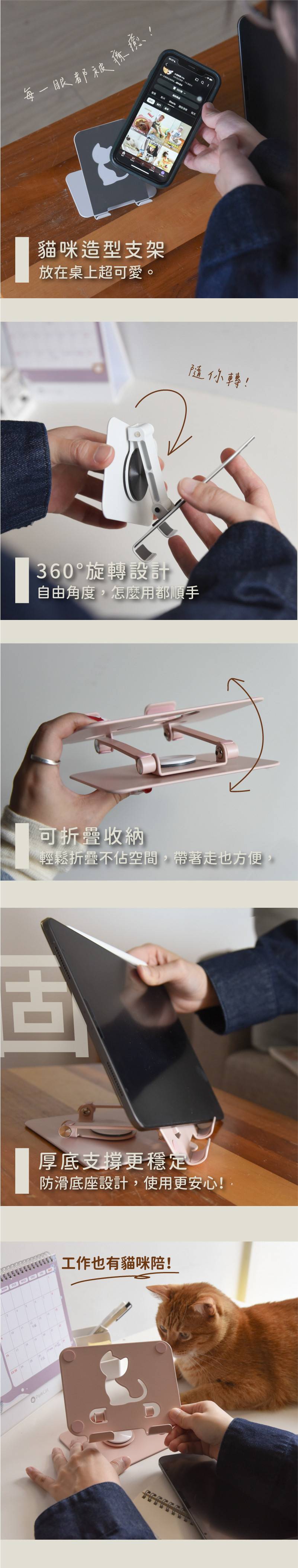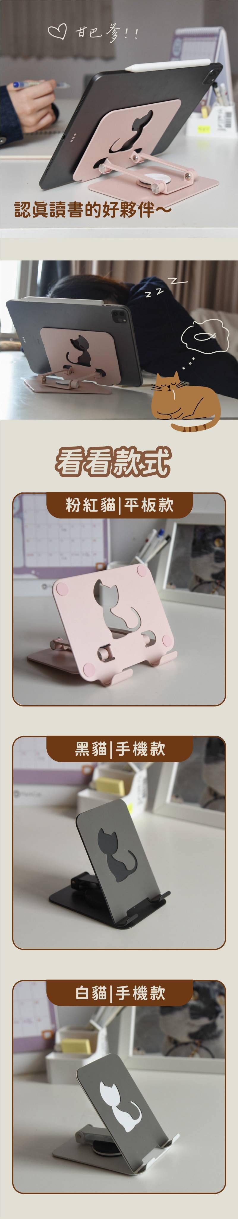 商品詳情 『商品資訊』・商品:【解放雙手享受生活】貓咪款旋轉折疊平板手機支架・樣式:粉紅貓咪(平板款)、黑貓(手機款)、白貓(手機款)・材質:鋁合金、矽膠・適用設備:手機、平板 【解放雙手享受生活】貓咪款旋轉折疊平板手機支架 TWD $399 ~ 699 TWD $349 ~ 599