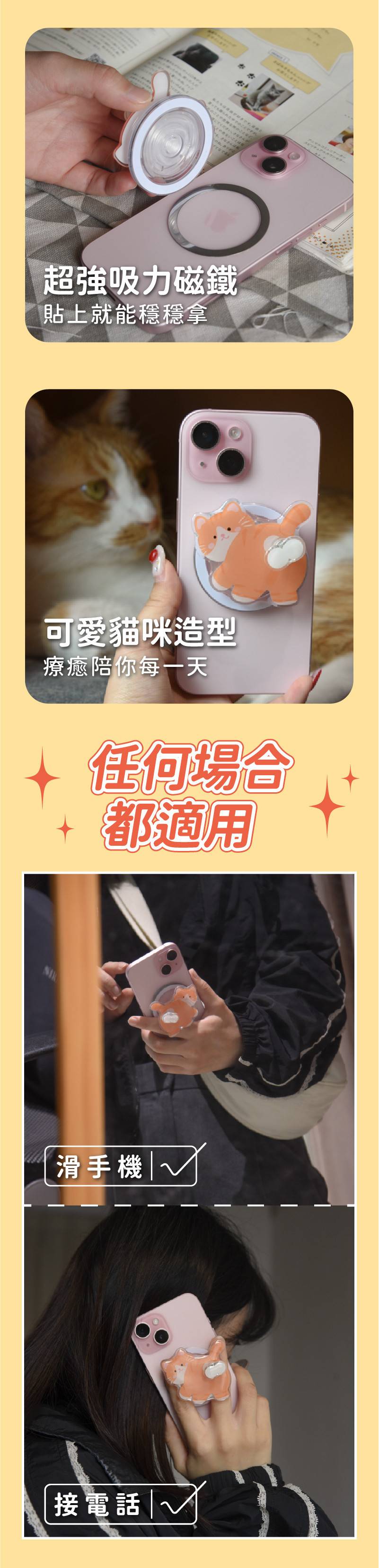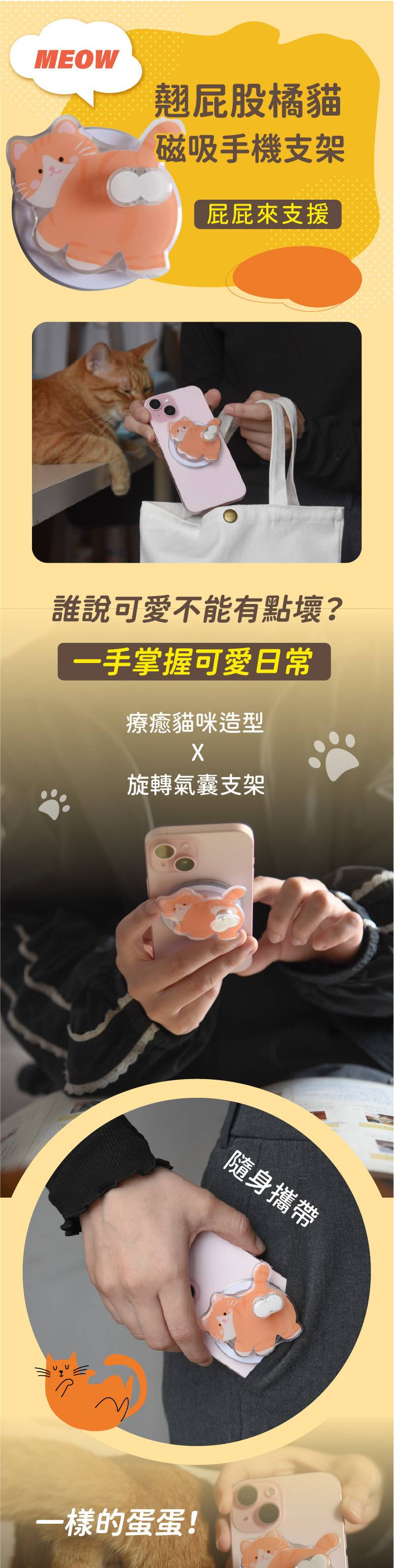 ・商品:【屁屁來支援】翹屁股橘貓磁吸手機支架