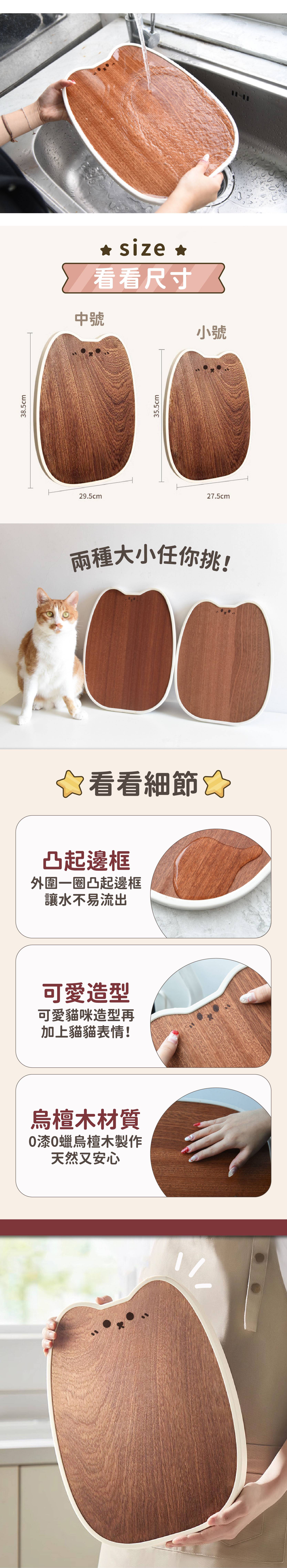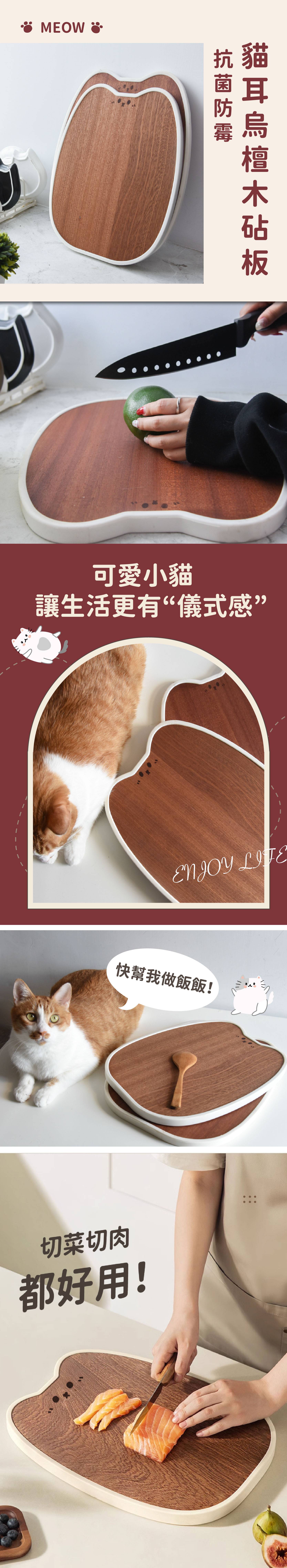 商品詳情 『商品資訊』・商品:【抗菌防霉】貓耳烏檀木砧板・樣式:小號、中號・材質:烏檀木・尺寸:小號35.5*27.5cm;中號38.5*29.5cm 【抗菌防霉】貓耳烏檀木砧板 TWD $599 ~ 699 TWD $449 ~ 549