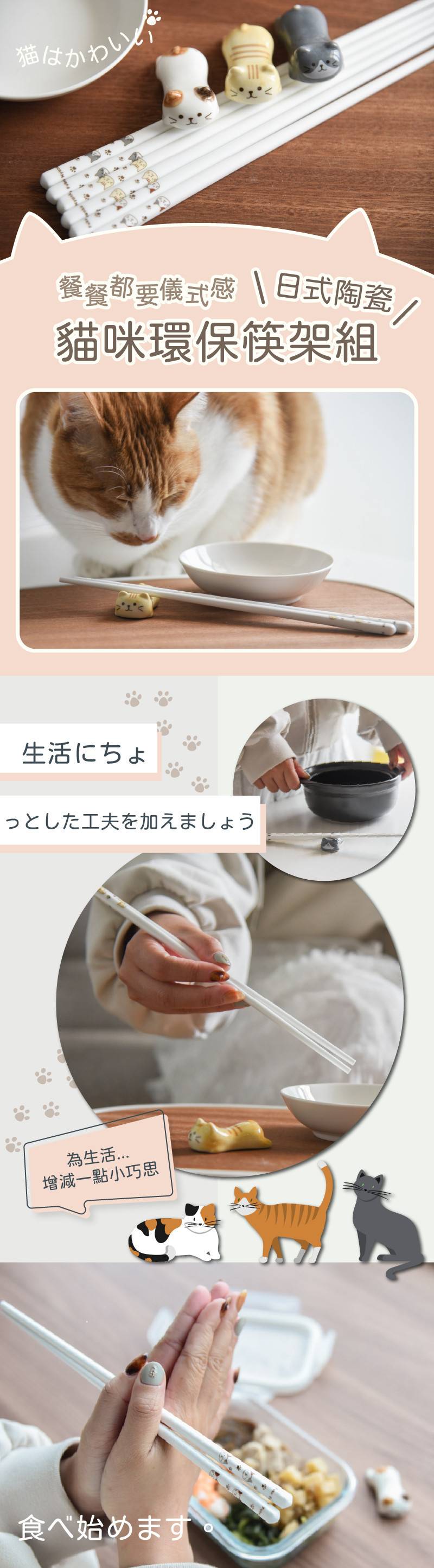 【加購現折30】日式陶瓷貓咪環保筷架組