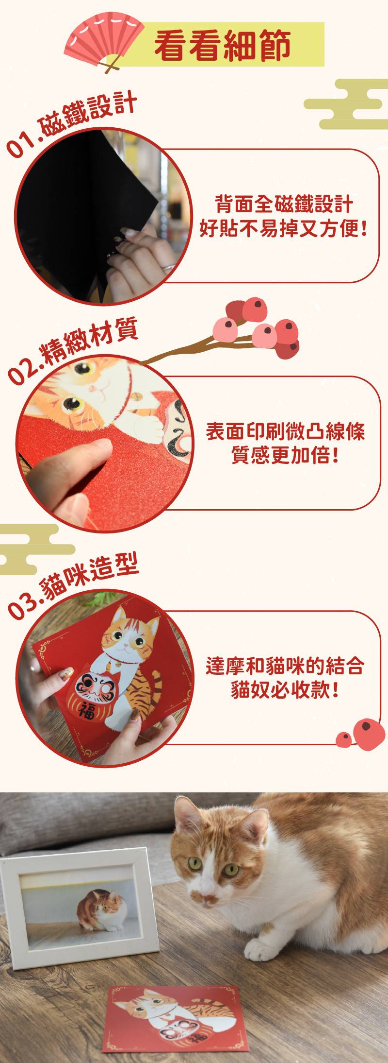 ・商品:【好運帶回家】貓樂園獨家設計貓貓達摩磁性春聯