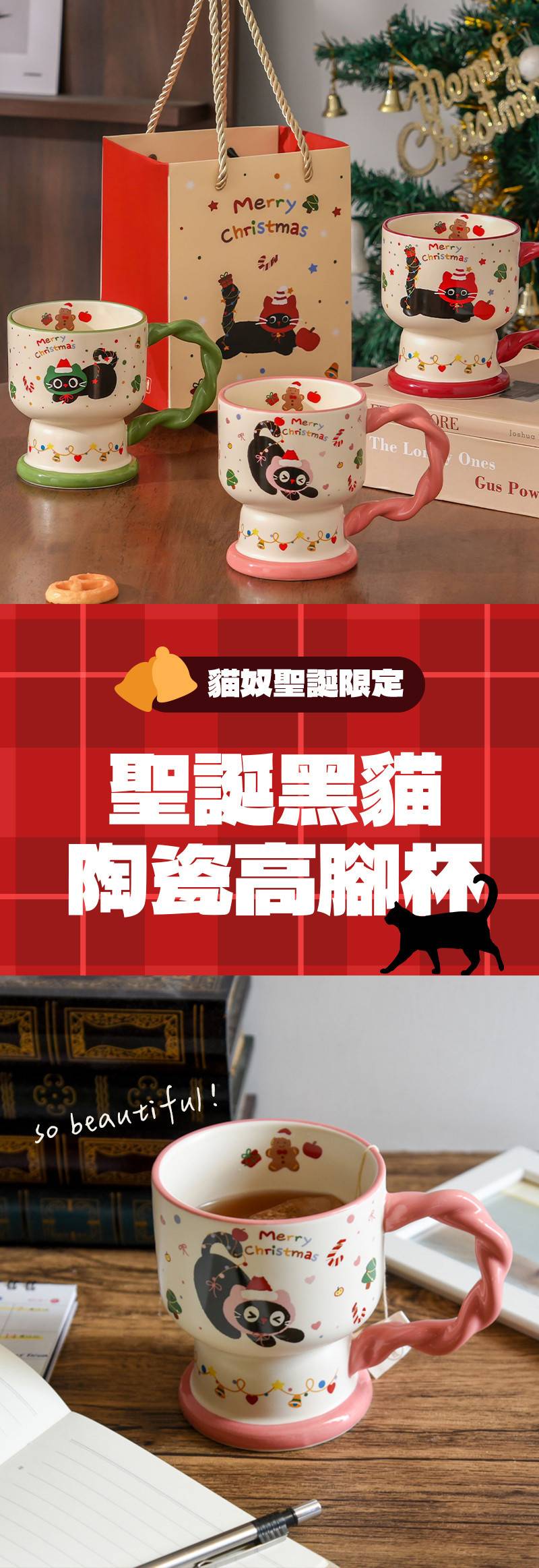 *極限量售完不補【貓奴聖誕限定】聖誕黑貓陶瓷高腳杯 附精美盒子