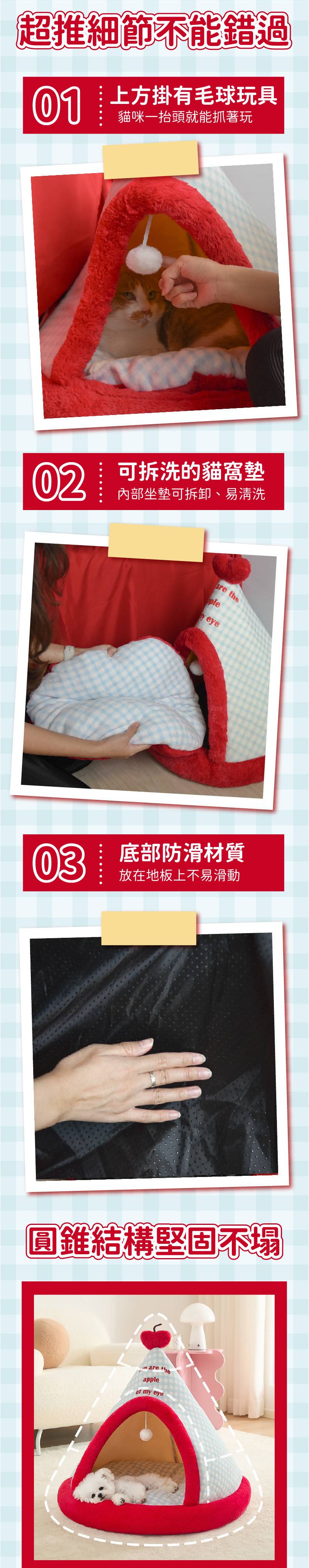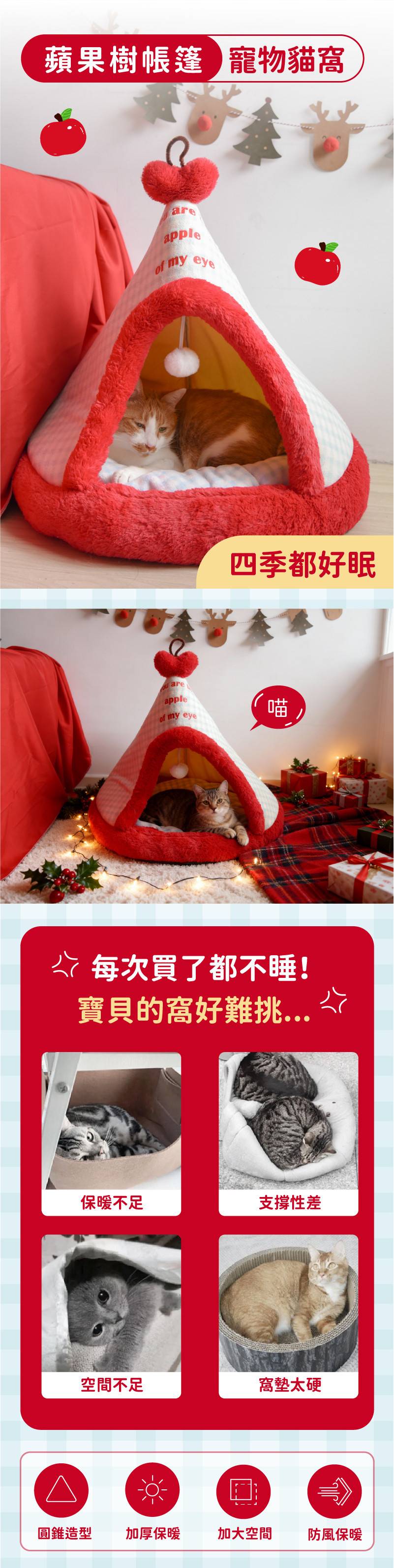 商品詳情 『商品資訊』・商品:【四季都好眠】蘋果樹帳篷寵物貓窩・樣式:F・材質:牛奶絨、雲朵棉、PP棉・尺寸(cm):60*60cm・適用寵物:貓犬通用 【四季都好眠】蘋果樹帳篷寵物貓窩 TWD $999 TWD $799