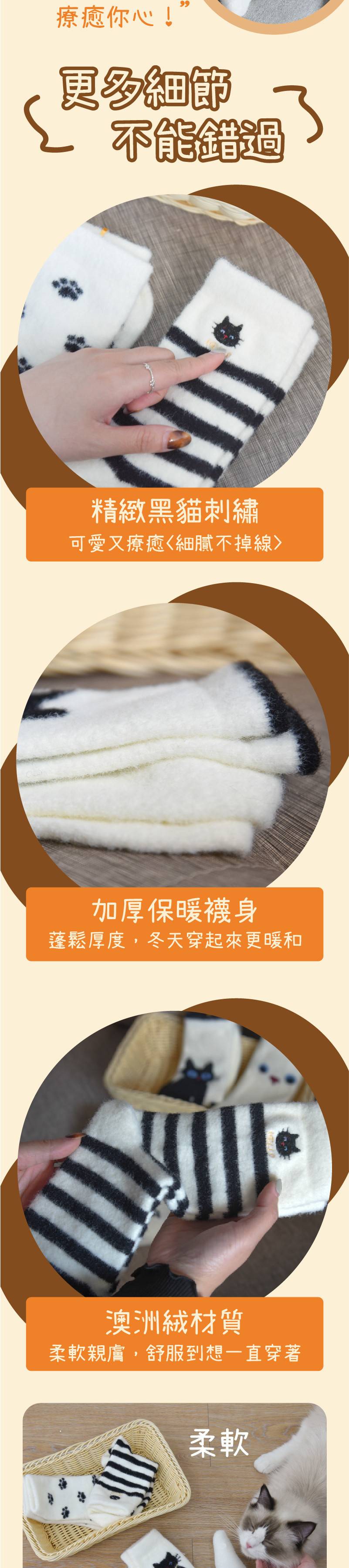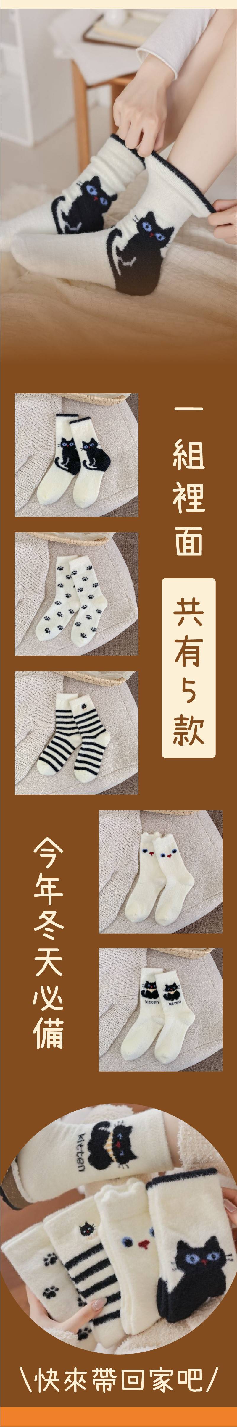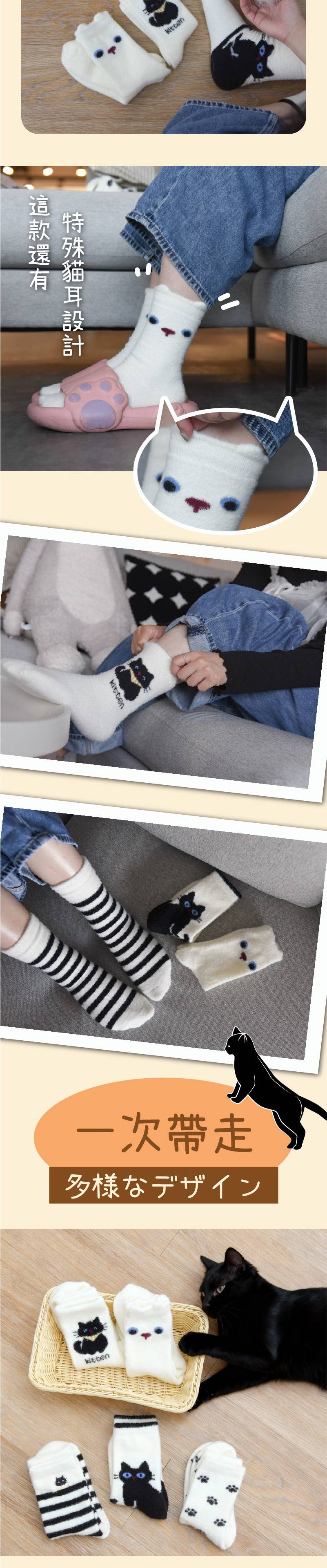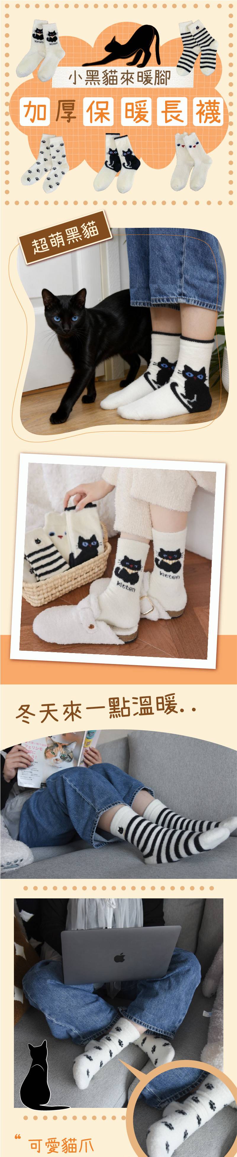 商品詳情 『商品資訊』・商品:【小黑貓來暖腳】小黑貓加厚保暖長襪・樣式:五入一組・尺寸(cm):均碼(35-40)・材質:錦綸/尼龍 【小黑貓來暖腳】小黑貓加厚保暖長襪 五雙一組 TWD $499 TWD $349