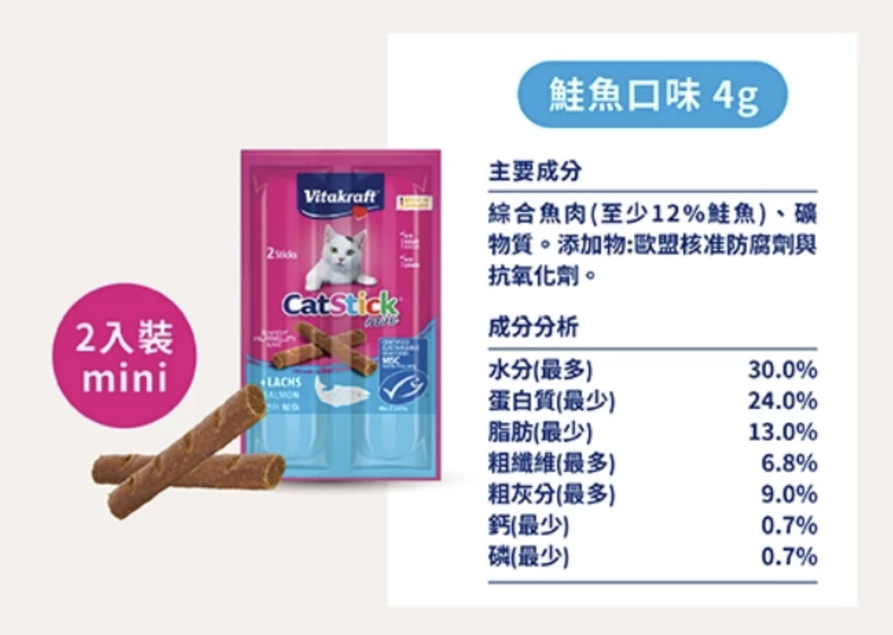 3折出清【短效最低價出清】Vita衛塔卡夫貓快餐mini 鮭魚口味4g*50片