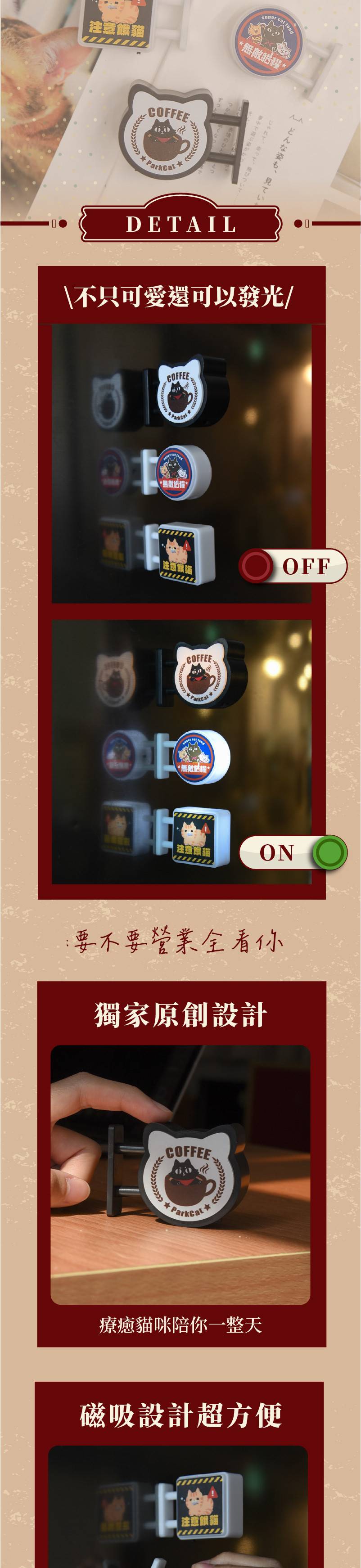 商品詳情 『商品資訊』・商品:【帕克與他的小夥伴】貓樂園原創IP磁吸發光冰箱貼・樣式:方款-注意餓貓、圓款-無敵貓糧、貓頭款-貓咪咖啡廳・材質:ABS・電力來源: 鈕扣電池 (可更換) 【帕克與他的小夥伴】貓樂園原創IP磁吸發光冰箱貼 TWD $199 TWD $129