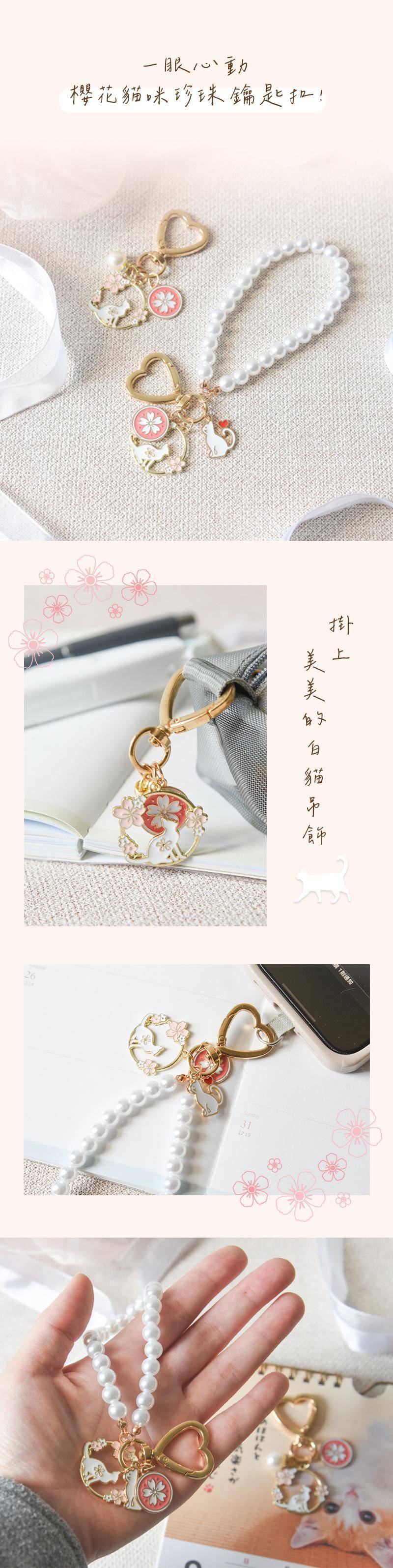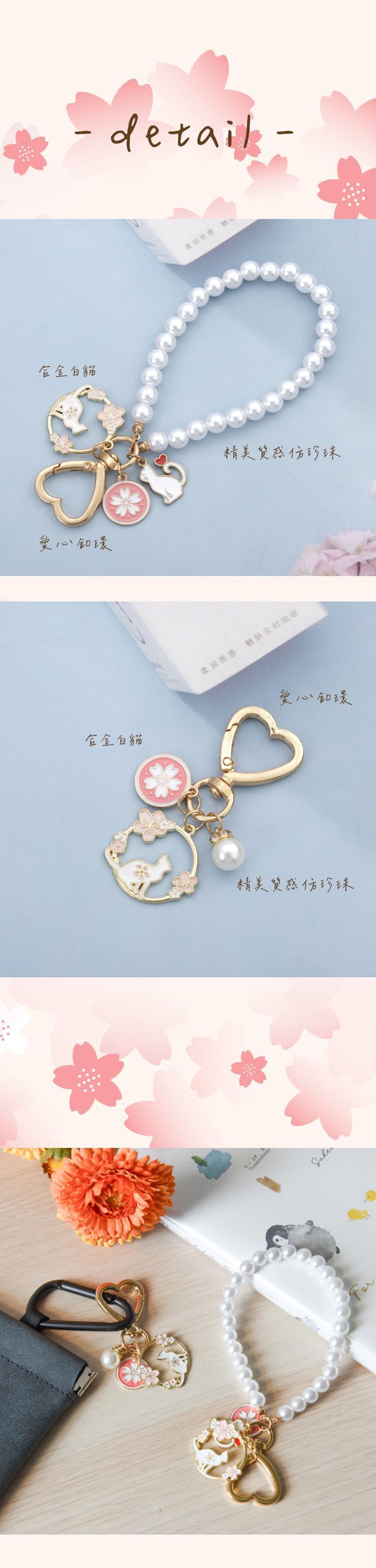 ・商品:【一眼心動】櫻花貓咪珍珠鑰匙扣